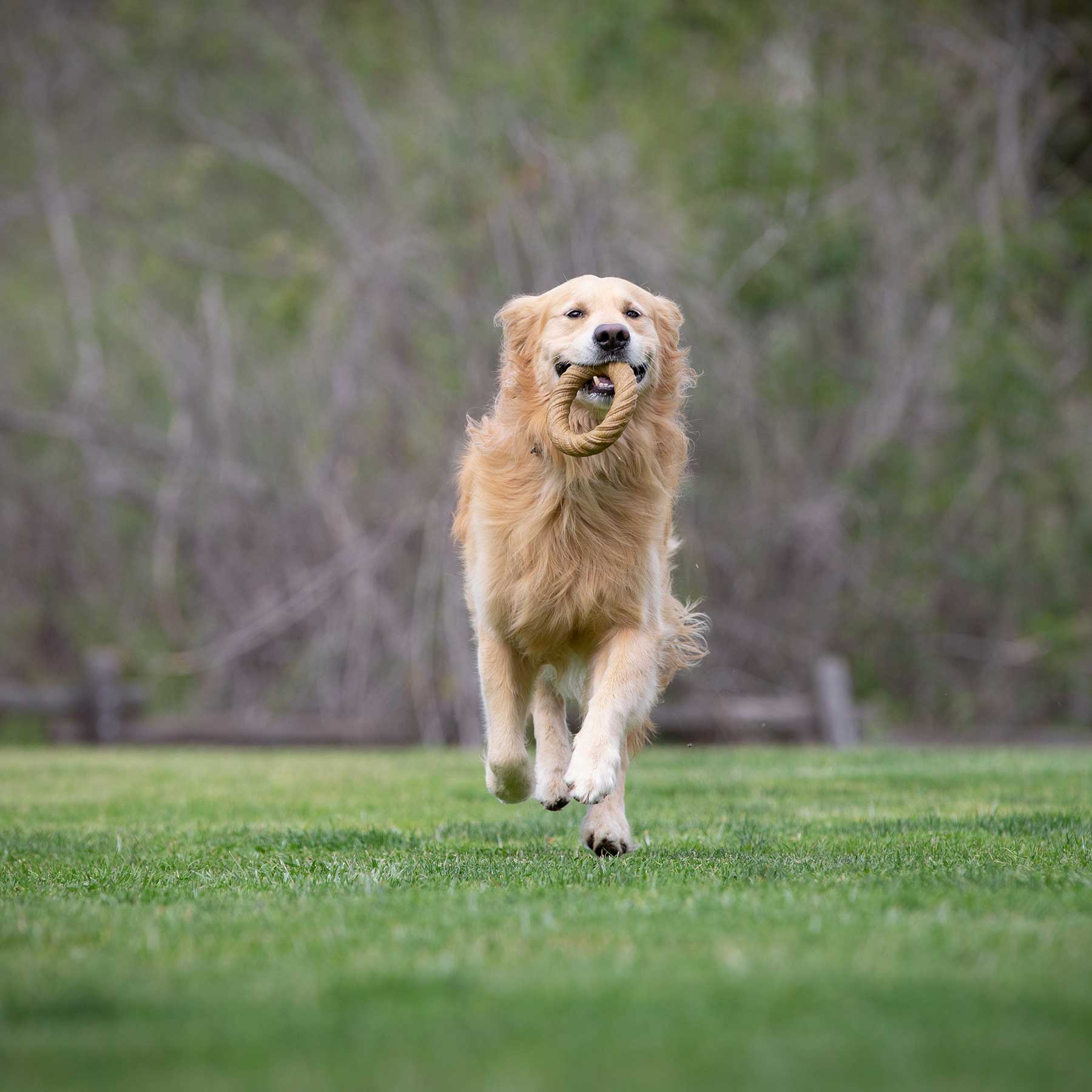 Fetch it, Tug it, Chew it! BarkBone™ Natural Instincts Nylon Chew Ring gives dogs options when it comes to chew time and playtime. Made for tough chewers and available in two sizes, Nylon Chew Rings are infused with allergen-free peanut butter which releases as your dog chews keeping your dog busy and entertained. Available in 2 sizes: Small and Medium. Proudly made in the USA!