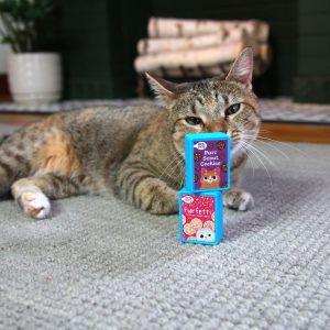 Mad Cat® Purr Scout Cookies Batty Boxes 2 Pack™ will get your cat active and engaged to play. These adorable cookie boxes are purrfect for batting, chasing, and pouncing! The small boxes glide and slide on smooth surfaces.Each box includes a different feature, compressed catnip, and a jingle bell inside to create enticing sounds and scents!